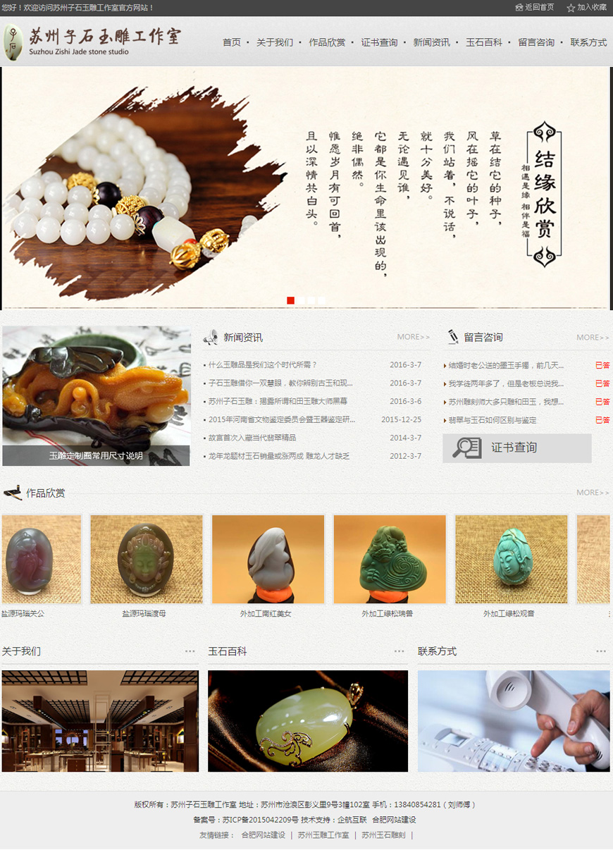蘇州子石玉雕創立于2010年(2014從廣東搬遷至蘇州),是一家集設計、加工、制作、銷售為一體的專業玉石雕刻工作室。本工作室人才云集、設備先進、審料嚴格、交付守時,玉雕師巧妙的將揭陽手法和蘇工技巧相結合,創意獨特、構圖新穎、手法自然、雕琢細膩,甄選的和田、南紅、綠松等原礦石頃刻變身成為厚重大氣、優雅脫俗、寓意不凡、愛不釋手的傳世藝術精品。