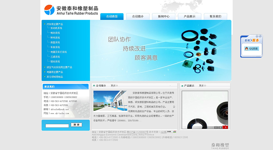 安徽泰和橡塑制品有限公司,位于風(fēng)景秀麗的寧國經(jīng)濟技術(shù)開發(fā)區(qū),是一家專業(yè)生產(chǎn)、銷售、研發(fā)橡膠塑料制品的公司。產(chǎn)品主要用于汽車、家電、工程機械及其他行業(yè)。公司擁有先進的生產(chǎn)設(shè)備、專業(yè)的研究人員、技術(shù)力量雄厚、工藝精湛、檢測手段齊全。采用先進的企業(yè)經(jīng)營理念,一流的生產(chǎn)設(shè)備和技術(shù),嚴(yán)格遵守 ISO9001、ISO/TS16949:2009質(zhì)量管理體系及ISO14001環(huán)境體系,為國內(nèi)外客戶提供優(yōu)質(zhì)、安全、綠色的產(chǎn)品和服務(wù)!公司秉承著“責(zé)任•進步”的理念,始終堅持以客戶需求為導(dǎo)向,以技術(shù)創(chuàng)新為動力,不斷做大、做強、做精主營業(yè)務(wù),提升企業(yè)核心競爭力。努力站在行業(yè)技術(shù)革新的最前沿,精心打造具有國際競爭力的創(chuàng)新型企業(yè)。