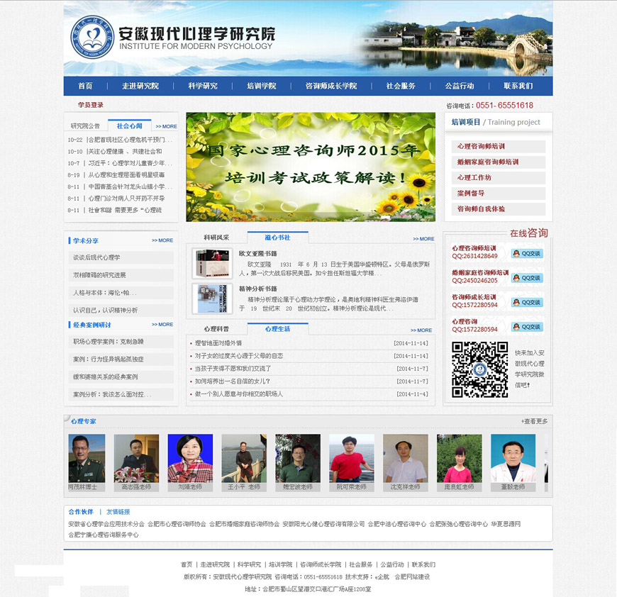 安徽現(xiàn)代心理學(xué)研究院是由安徽省民政廳審批成立的社會(huì)組織機(jī)構(gòu),團(tuán)結(jié)凝聚省內(nèi)外眾多理論基礎(chǔ)雄厚、實(shí)踐經(jīng)驗(yàn)豐富的心理學(xué)專家和學(xué)者,致力于從事心理學(xué)的科學(xué)研究、學(xué)術(shù)交流、科普預(yù)防、技能培訓(xùn)、督導(dǎo)成長(zhǎng)、咨詢服務(wù)、心理學(xué)書籍出版等專業(yè)性工作,努力發(fā)揮心理學(xué)科的特點(diǎn)和優(yōu)勢(shì),以更好地服務(wù)于人民群眾的心理健康需求。同時(shí),我院積極鼓勵(lì)廣大心理學(xué)科研工作者開(kāi)展西方心理學(xué)與中國(guó)傳統(tǒng)文化相結(jié)合的研究,不斷探索構(gòu)建起適合我國(guó)國(guó)情的本土心理學(xué)科知識(shí)體系,為構(gòu)建和諧、幸福社會(huì)做出貢獻(xiàn)!