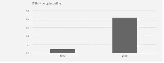 1.十幾年前,我們被1995年到2000年的網民數增長震驚,這一階段網民數從0.5億人增長到4億人。