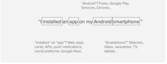 此外,移動互聯網格局還未完全固定,如就“Iinstalled an app on my Android smartphone.”這句話,其中“下載”、“APP”、“Android”、“智能手機”,這四個概念都還有很大發展空間,2020 年我再說這話時,可能和現在意思已大有不同。