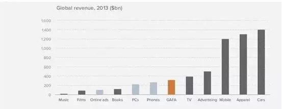 2004年,科技品牌價值占全球品牌價值前100位的30%,其中谷歌、蘋果、亞馬遜和Facebook 四家占不到2%;但現在,前者已達到40%,后者快接近20%。