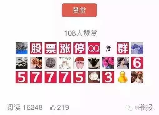 這是最新出爐的廣告形式,據說視覺志和小道消息等公眾號都深受其害。具體方法是用27個不同頭像的微信以最快的速度對博主進行贊賞,屆時贊賞只顯示前面的27個微信頭像和相應的廣告。據說,有人花了27元取得了30萬的傳播效果。