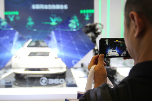 資料圖片:9月17日,在上海舉行的2017年網(wǎng)絡(luò)安全博覽會(huì)暨網(wǎng)絡(luò)安全成就展上,一名觀眾在拍攝360展臺(tái)的網(wǎng)絡(luò)安全概念車,概念車通過(guò)網(wǎng)絡(luò)安全防護(hù)系統(tǒng)防止聯(lián)網(wǎng)后被黑客控制。