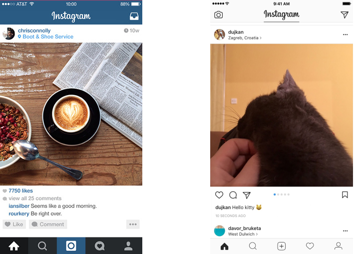 Instagram for iOS (2015 vs. 2017)