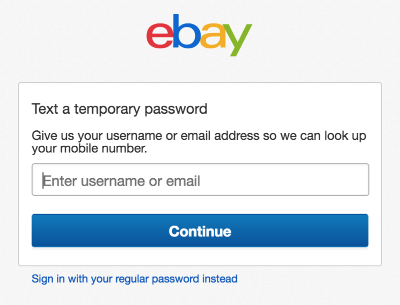 Ebay會根據賬戶綁定手機號驗證發送一個一次性密碼,或者通過驗證手機號更換整個賬戶/密碼對: