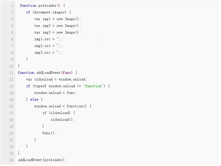 我們又對該方法進行了改進。將該腳本封裝入一個函數中,并使用 addLoadEvent(),延遲預加載時間,直到頁面加載完畢。