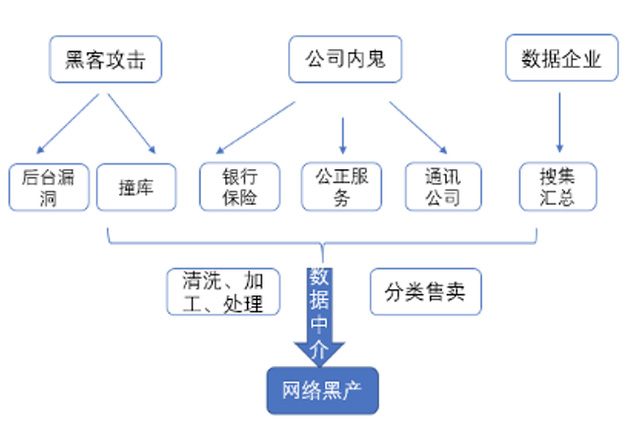 一是由黑客利用互聯網應用或者數據服務商的漏洞,通過非法手段入侵數據庫,竊取大量公民個人數據,而后將數據銷售給數據中介。