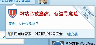 4.08日中午3點左右發現網站被鑒定為危險網站,具體表現:使用Ie、360瀏覽器打開網站出現攔截提示,使用QQ給好友發網站出現危險網站提示!對于無圖無真相的圍觀者,小編想說:請看圖