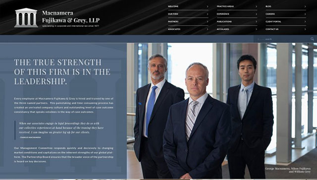 Marks Gray的開頭看起來很簡潔,但這不是問題。相反,網站看起來時尚而專業,這對于律師事務所來說尤為重要。導航很方便。商標和公司的名字一眼就能看出來,所有公司的做法都列了出來。另-件好事是這家公司在幾個社交網絡上都有賬戶。然而,如果你遵循同樣的策略,不要放棄你的賬戶一定期發布- 些東西。