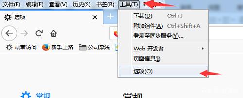 1、打開瀏覽器,選擇瀏覽器上方的“工具”→“選項”;如圖