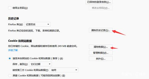 2、在瀏覽器的“選項”界面里面上,把歷史記錄和Cookie 網(wǎng)站數(shù)據(jù)都刪除掉;如圖