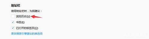 3、在瀏覽器的“選項”界面里面上,在把地址欄中“瀏覽歷史”勾選取消掉;如圖