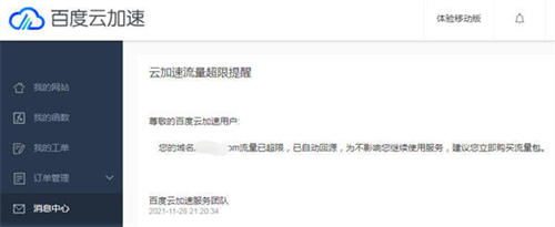 昨天晚上10點多,突然收到一個客戶的消息,說他收到了一個百度云加速的短信,說他的網站因為流量超標被回源了,讓我趕緊查看下怎么回事??吹竭@個消息后,把我也搞得有點懵,我記得我給他做的那個網站用的是百度云加速的免費版,每天有10G的流量,根本用不完啊,怎么會超標呢?難道是網站被人攻擊了?