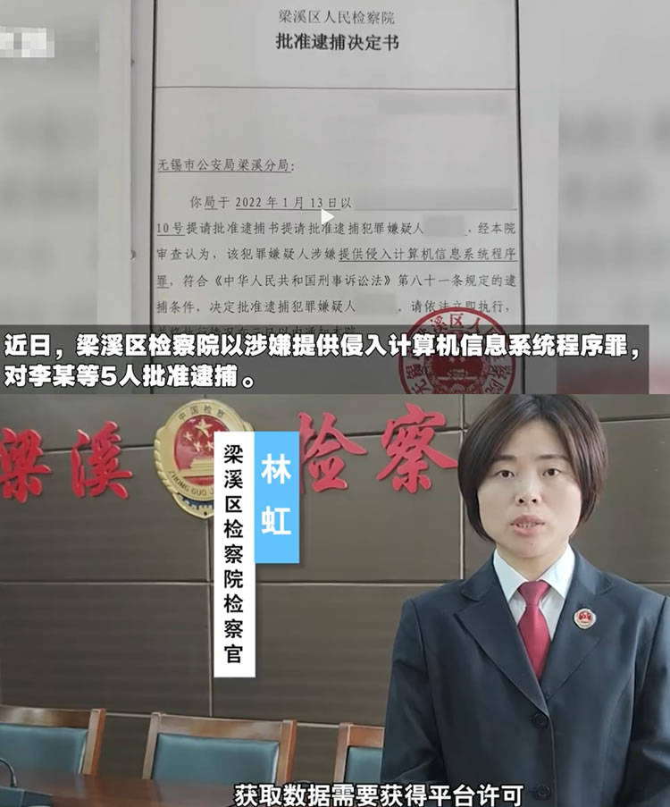 2021年4月至12月,“爬爬蝦”爬取短視頻用戶的帳號、評論等信息,被無錫市檢察院起訴,5人被批準逮捕。