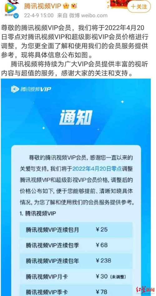 疫情大背景下,騰訊視頻官方宣布4月20日零點(diǎn)開(kāi)始VIP會(huì)員漲價(jià)