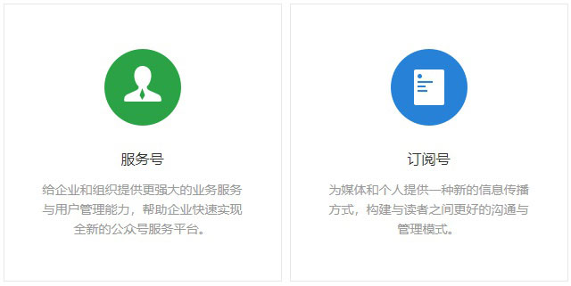 服務號:為企業和組織提供更強大的業務服務與用戶管理能力,主要偏向服務類交互;