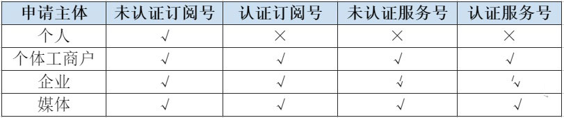 訂閱號適用人群:個人、媒體、企業、政府或其他組織。