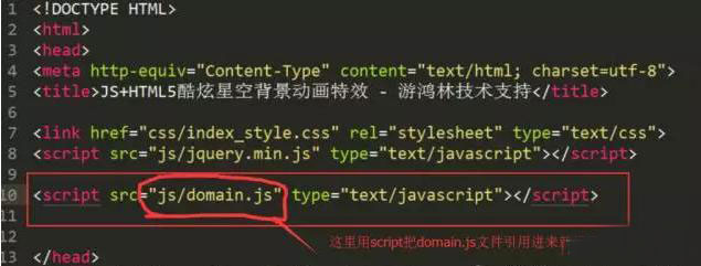 (4)然后向空間根目錄的首頁的 直接用script引入domain.js代碼:(這里我是直接放在空間里的js文件夾里)