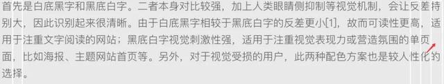 然而,白底黑字并非最好。由于白色具有100%的亮度,黑色是0%,巨大的亮度對比讓眼睛在閱讀時要盡全力去適應,容易引起眼部疲勞,因此白底黑字仍不適宜長時間的閱讀,所以印刷品讀物的紙張多用乳白色或淡黃色的紙張。又因為顯示器本身就發光,所以在電腦上閱讀純白色背景的文字,比在紙上閱讀時,眼睛會更容易疲乏。