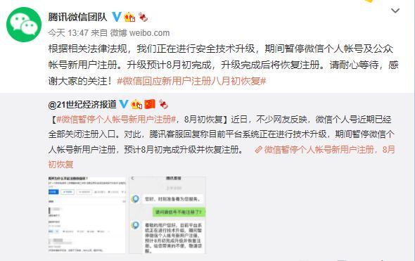 期間暫停微信個(gè)人帳號(hào)新用戶注冊(cè)