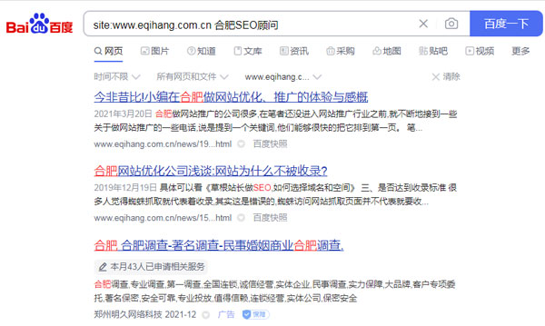 舉例,比如我想看看合肥SEO顧問這個詞可以做不?site:m.js1891.cn 合肥SEO顧問。