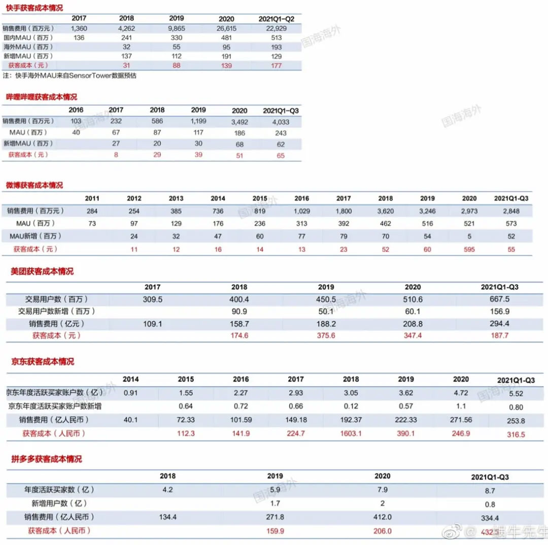 快手:2018年是31塊,2019年是88塊,2021是139塊,現在是177塊。