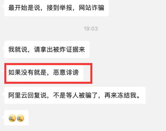 同時(shí)該站長(zhǎng)還建議:如果大家的賬號(hào)中有涉及到某些方面的網(wǎng)站,只要有一丟丟的違規(guī),就轉(zhuǎn)移一下吧,以火箭的速度轉(zhuǎn)移……如果阿里云拿不出涉詐的證據(jù)出來(lái),就是惡意誹謗,而阿里云的回復(fù)則說(shuō),不是等人被騙了,再來(lái)凍結(jié)網(wǎng)站。