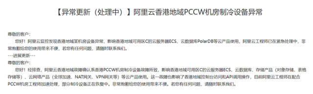 阿里云香港某機(jī)房設(shè)備異常,大面積停擺24小時(shí)