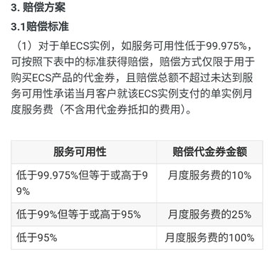 另外這次宕機(jī)阿里云會(huì)進(jìn)行賠償,賠償代金卷,看情況,估計(jì)會(huì)賠償一個(gè)月的代金卷,下一個(gè)月就可以免費(fèi)用一個(gè)月的阿里云了,如果使用代金卷期間宕機(jī)是不會(huì)賠償?shù)摹?/span>