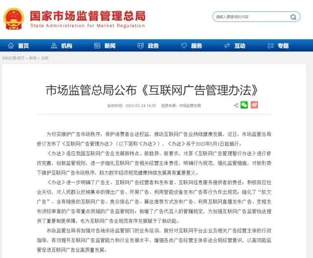 從這個角度來說,朱濤認為,《管理辦法》解決了互聯網廣告業中長期存在的不規范亂象,順應了時代發展需要,為今后市場監管部門在相關領域的行政執法提供了重要的依據。