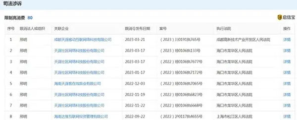 與此同時,據風險信息顯示,天涯目前累計被執行金額已超 4.6 億元,相關法人和創始人已經被限制高消費。