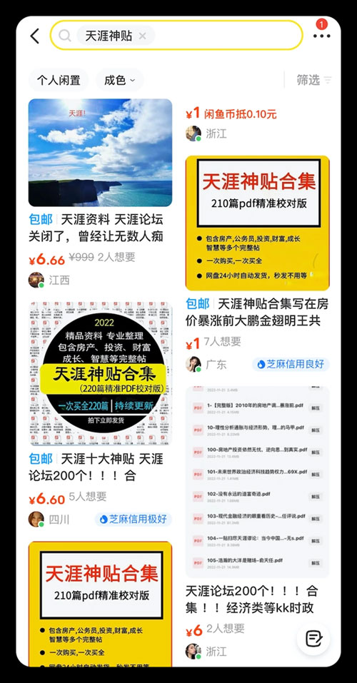 如今在某魚、某寶上,依然有人將天涯神貼打包出售,可見天涯當時內容的含金量。