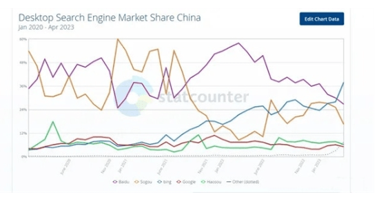2023年5月22日消息,中國搜索引擎市場發(fā)生了重大的變革。根據(jù)最新數(shù)據(jù)來自StatCounter,微軟旗下的必應(yīng)搜索在中國內(nèi)地桌面搜索市場份額創(chuàng)下了歷史新高,達(dá)到了37.4%。這一數(shù)據(jù)顯示,必應(yīng)搜索已經(jīng)超越百度,成為中國最大的桌面搜索引擎。