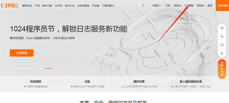 注冊完登錄阿里云賬號后點擊右上角ICP備案