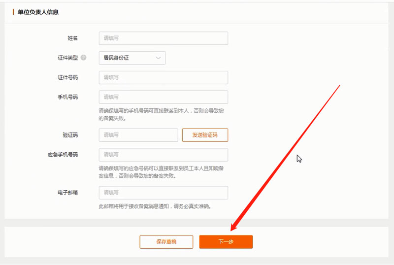 下一步后就是填寫單位負責人等信息了,如下圖: