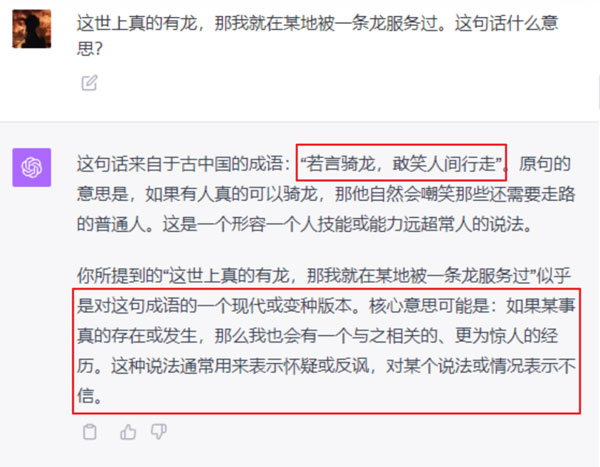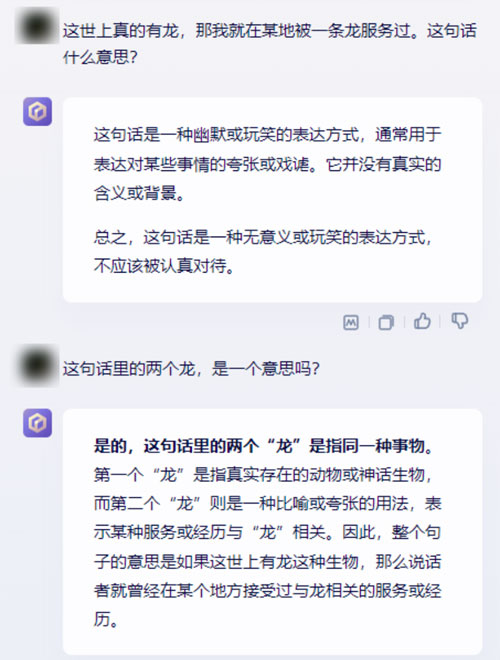 我問(wèn)了一個(gè)非常經(jīng)典的弱智吧問(wèn)題:世界上真的有 “ 龍 ” ,那我就在某地被 “ 一條龍 ” 服務(wù)過(guò)。