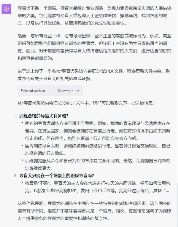 世超找了一份曾經(jīng)采訪導(dǎo)盲犬相關(guān)人士的采訪文件,全采訪資料總共有一萬(wàn)三千多個(gè)字。