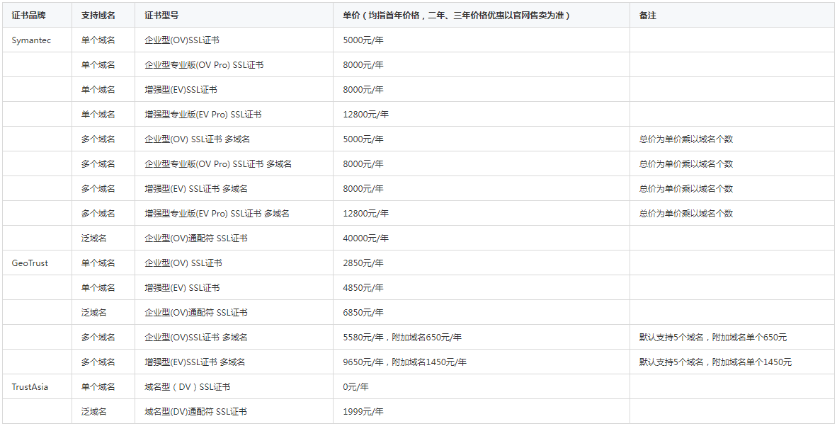 SSL證書(shū)價(jià)格參考: