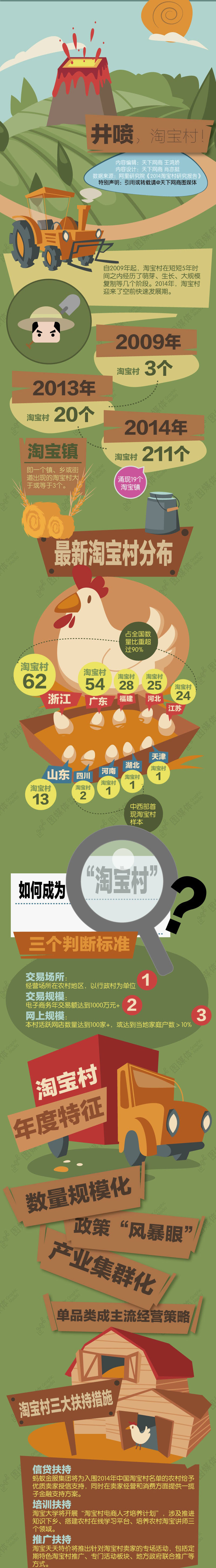 截至2014年12月,全國(guó)已發(fā)現(xiàn)的淘寶村數(shù)量增至211個(gè),網(wǎng)店7萬(wàn)家以上,直接就業(yè)超過(guò)28萬(wàn)人。未來(lái)5~10年,淘寶村的數(shù)量在中國(guó)將繼續(xù)快速增長(zhǎng),并最終實(shí)現(xiàn)常態(tài)化。井噴,淘寶村!